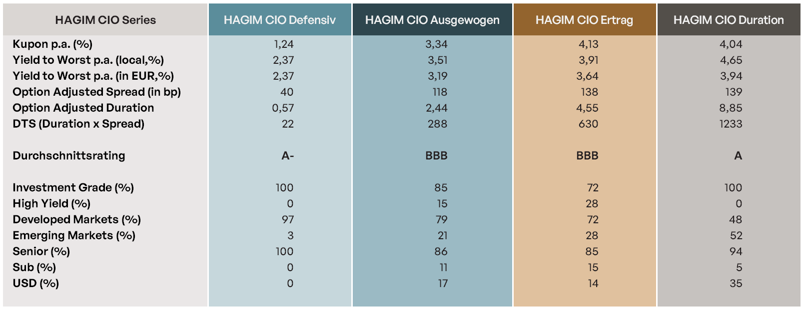 Mit unserer HAGIM CIO Series bündeln wir das Beste aus allen Teilsegmenten in maßgeschneiderten Portfolios. Dabei liegt unser Fokus auf der fundamentalen Kreditanalyse und Titelselektion, um die besten Emittenten und Emissionen für unsere Kunden zu identifizieren.
